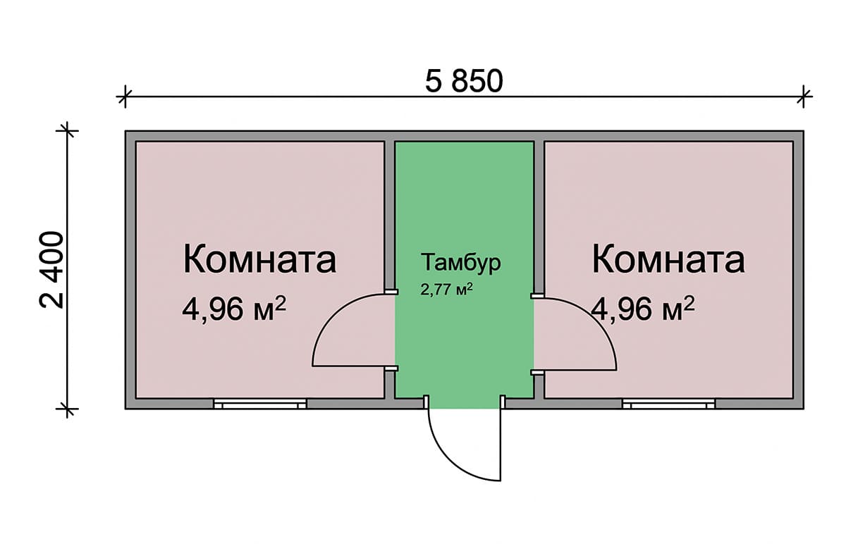 Блок контейнер с тамбуром 5850х24005,85х2,414,04ДВП-Оргалит: