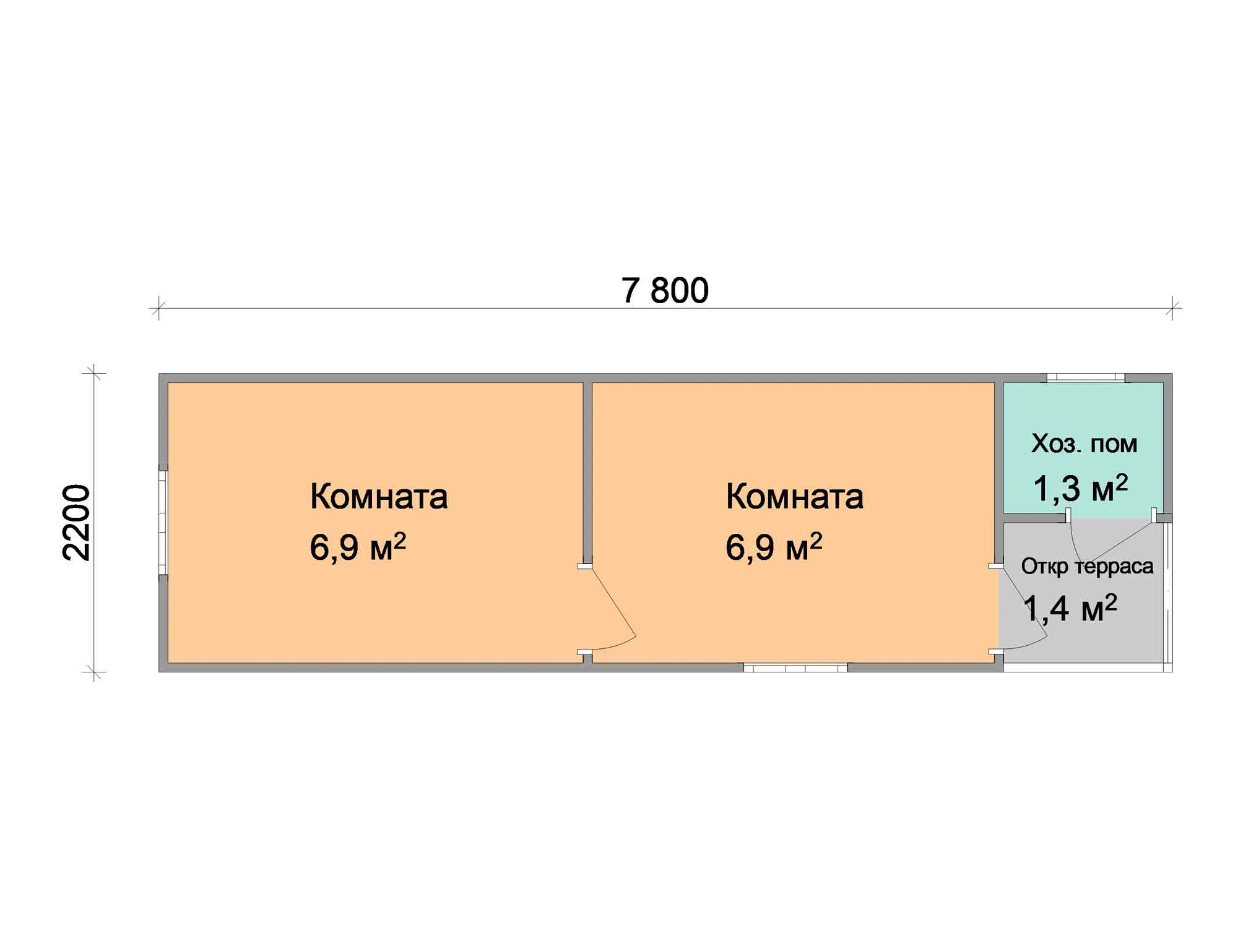 Дачная бытовка Крокус7.8x2.217.16ДВП-Оргалит: