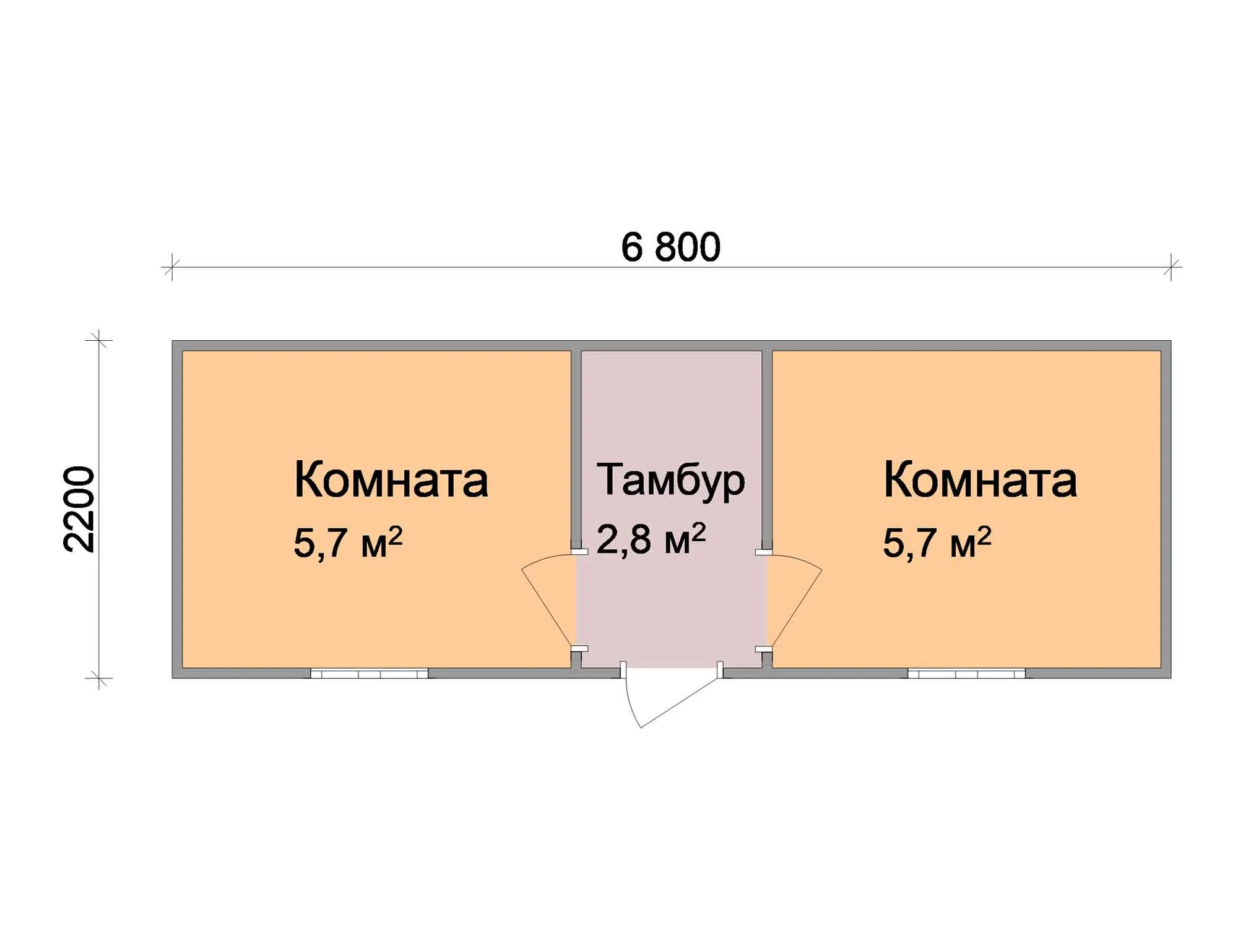 Дачная бытовка Тюльпан6.8x2.214.96ДВП-Оргалит: